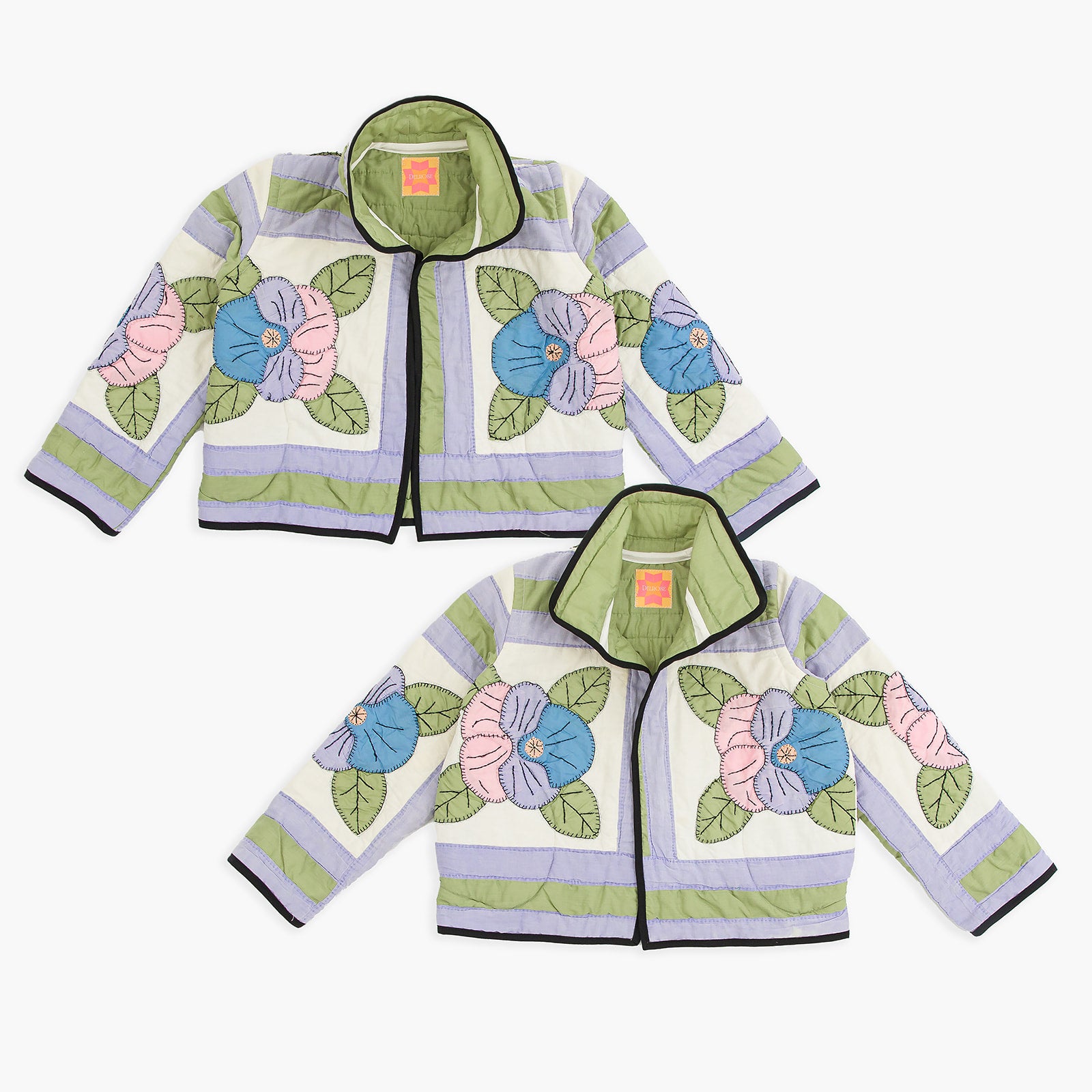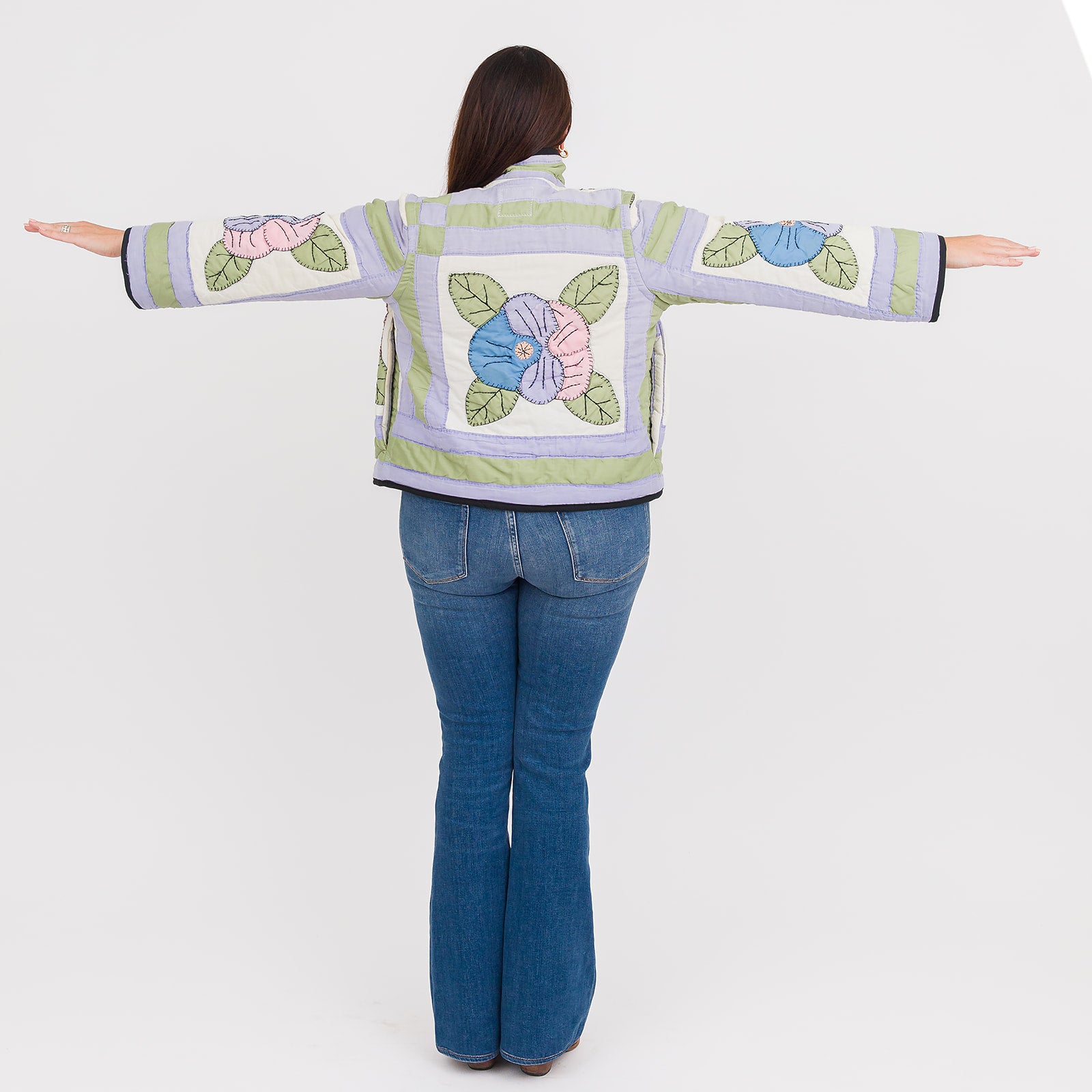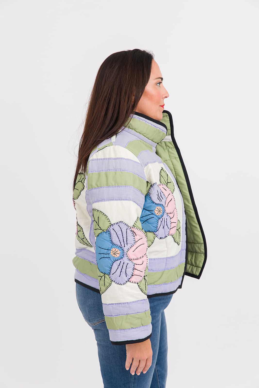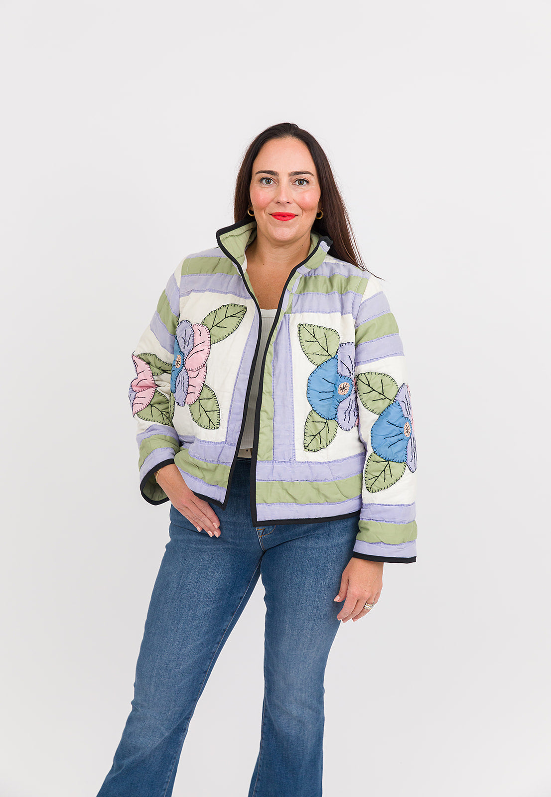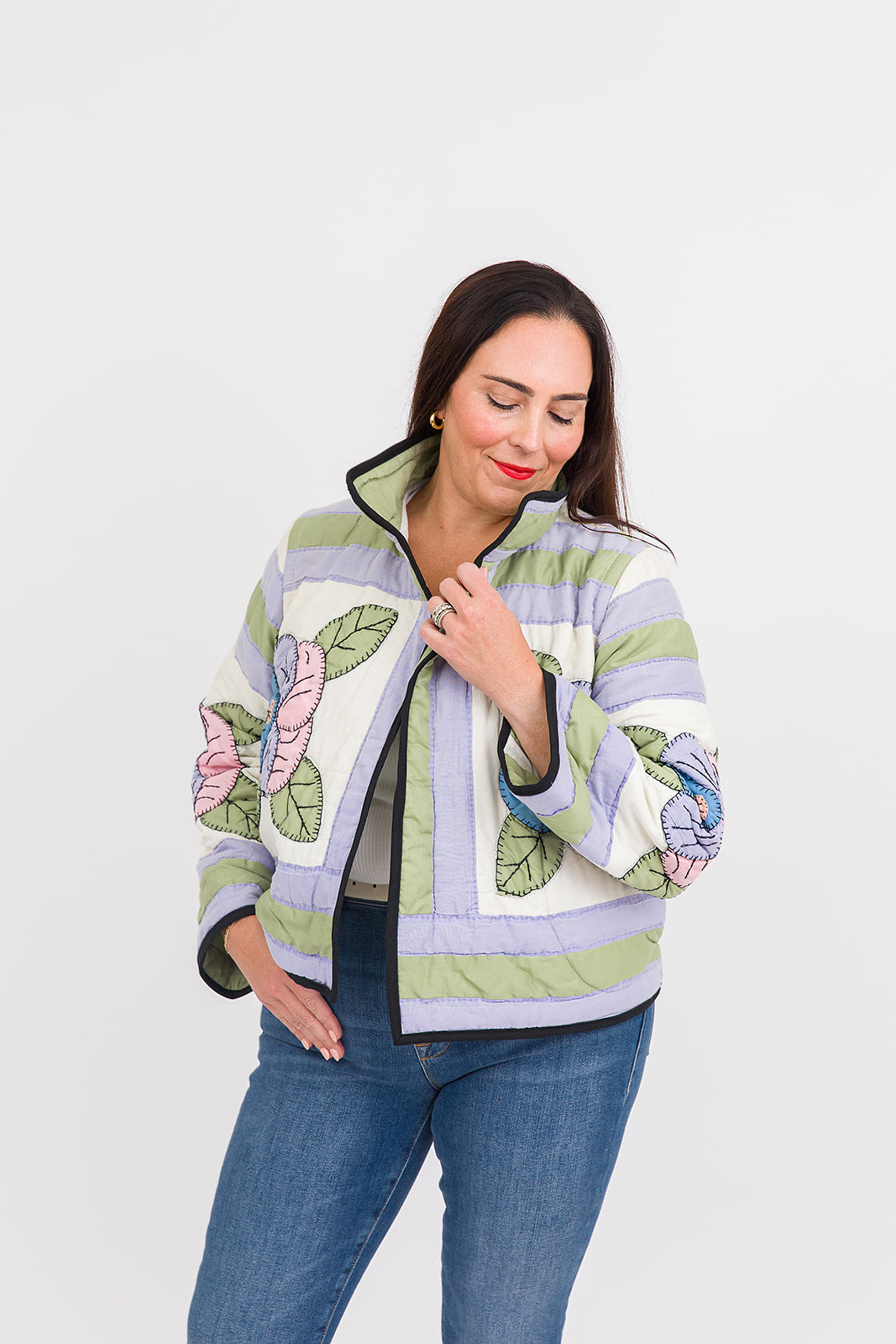 With it's stunning appliqué flowers and cropped shape, the Heather is sure to impress even the non-quilt lovers (do they even exist?). A quick google search will tell you that Appliqué is a sewing technique that involves attaching fabric pieces to a larger piece of fabric to create a pattern or picture. I can tell you that it is one of my most favorite patterns to see on a quilt because the patterns stand out so much. The Heather has a sister jacket, the Evy, and you guessed it - they are two of my favorite sisters. The only difference between the two jackets is that flowers are reversed.